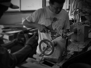 天然木の無垢の木を使った作品は、ひとつひとつ木目などが違います。本来、大量生産では除かれる「木の節」なども、そのまま省かずに使っています。その方が素敵な、大量生産に負けない良い作品が生まれます。木目という木の個性を生かし、世界にひとつだけの作品ができあがります。