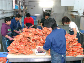 毛ガニ:オホーツク海は1月~3月にかけて流氷に覆われます。その流氷が運んでくるプランクトンをたっぷり蓄えた毛ガニは、海明け毛ガニとしてブランドにもなっています。