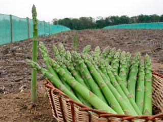 アスパラ:農業の町・小清水町では「ゆう水」を使った土壌改善を行っています。小清水産アスパラは、他の地域のアスパラよりみずみずしく甘いことで有名です。