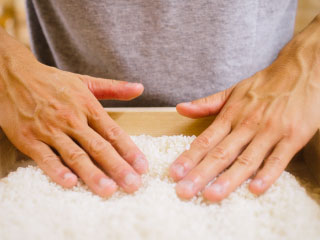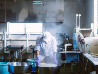 藤原みそこうじ店では、安心・安全な味噌をお届けするために地元産の原料と昔ながらの天然醸造にこだわっています。若桜町産の特別栽培米、鳥取県産の大豆を使用。それらを鳥取県若桜町を流れる氷ノ山(ひょうのせん)山系の天然水と、ミネラル分が豊富な沖縄海水塩で仕込みます。また藤原さん自ら、若桜町落折地区の耕作放棄地を開墾し、無農薬の大豆栽培にも取り組み、無農薬の大豆だけを使った味噌作りにも挑戦されています。