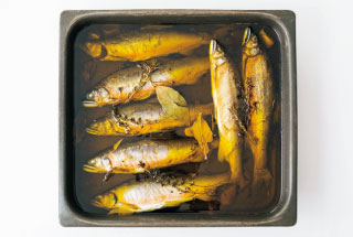 鮎のコンフィに使用している鮎はすべて四万十川で獲れた天然の鮎であり、塩は四万十町で作られたこだわりのものです。オリーブオイルは、鮎に負けないほど豊かな香りのスペイン産の厳選したものを使っています。