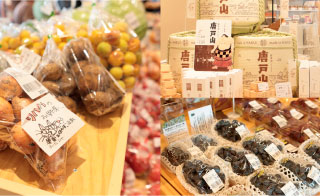 道の駅のと千里浜の直売所「かわんちまーと」では、羽咋米をはじめ、農薬や肥料、除草剤を使わずに栽培した農産物や、能登産天然イノシシ「のとしし」を使ったお肉や加工品を豊富に取りそろえています。また、春には菜花やスナップエンドウ、夏にはスイカやブドウ、秋には柿、イチジク、サツマイモ、冬には大根やリンゴなど、四季折々の農作物が豊富に並びます。その他、地元のお菓子屋さんのお菓子や、道の駅オリジナル商品もたくさんご用意しています。能登の「いいもの」を取りそろえた道の駅のと千里浜へぜひお越しください。