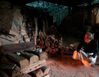 窯焼きは「松の生命を作品に」と肝に命じ、登り窯で30時間以上かけゆっくりと焼成しています。