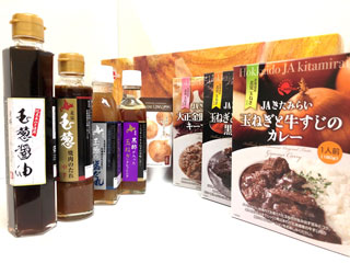 JAきたみらい産のタマネギと北海道産の牛すじ肉をじっくりとろとろになるまで煮込んだレトルト食品「玉ねぎと牛すじのカレー」や、食物繊維が多く含まれる北海道産「白花豆」を原材料とした甘納豆など自慢の商品を取りそろえています。