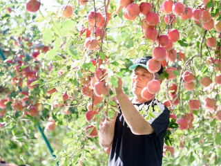 リンゴ栽培のスタートは、深い雪の中での剪定です。枝一つ一つ見極めておいしいリンゴが実るところを選別していきます。春になると花が咲き実が膨らみはじめ摘花摘果作業になります。この作業がその年のりんごが決まる大事な作業です。慎重にかつ大胆な決断が必要になります。実が大きくなるまで観察を欠かさず、収穫が近くなると味見を毎日しておいしくなってるか確認します。