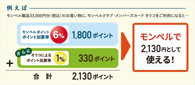 モンベルクラブとオリコカードに新規同時入会の場合、またはモンベルクラブ入会初年度にオリコカードへ切り替えられる場合、モンベルクラブの初年度ポイント加算率が、通常5%から6%にアップします。