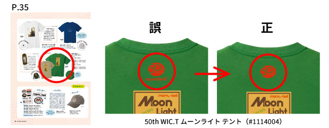 誤)丸い50周年ロゴ下にmont-bellロゴがある