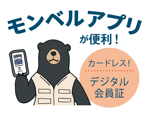 モンベルアプリをお持ちのスマートフォンに入れるとデジタル会員証をはじめ、さまざまな機能が使えます!