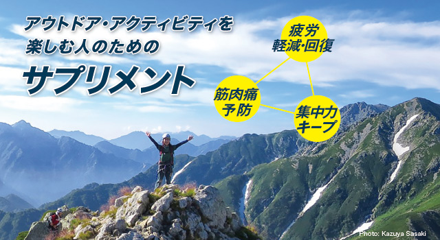 アウトドアに精通したモンベルが提案する疲労軽減・回復促進のためのサプリメント。登山・カヤック・自転車など、アクティブに活動する人を体の内側からサポートします。