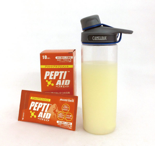 登山中の食事は米やパン、麺類など、炭水化物が多く、筋肉の補修材料となるたんぱく質が不足しがちです。「ぺプチエイド®」は吸収しやすいプロテインやペプチドを、ドリンクとして気軽に摂ることができます。筋肉をつくる材料を行動中から補っておくことで、疲労回復がスムーズになります。