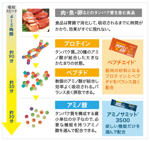 「アミノサミット®3500」「ペプチエイド®」を同時に摂ることでより効果的に