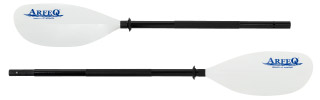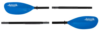 本ウェブサイトに掲載されているパドルには、一般的な2ピース(2分割)モデルと、より携行性に優れた4ピース(4分割)モデルがあります。2ピースモデルは2分割のため、剛性が高く組み立ても簡単です。4ピースモデルは、2ピースよりもコンパクトになり、収納や携行が容易です。アルフェックの収納袋にも入るサイズ感で、フォールディングカヤックとの相性がいいです。