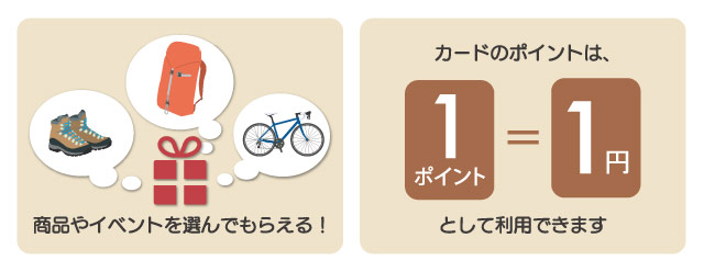 M.O.C.(モンベル・アウトドア・チャレンジ)イベント参加費(1名さま分)のお支払いにご利用いいただけます。お申込み時に、ポイントギフトカードをご提示ください。イベントが中止になった場合は、ギフトカードにポイントをお戻しいたしますので、イベント開催日まで大切に保管してください。