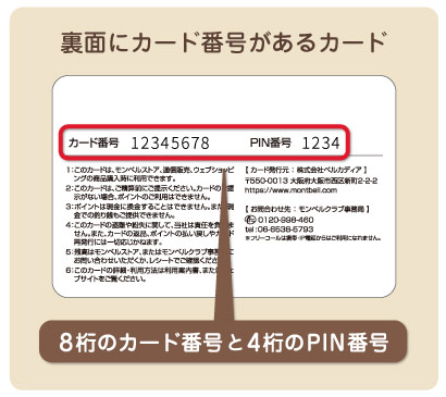 ○カード番号が裏面にあるカード:8桁のカード番号と4桁のPIN番号が必要となります。