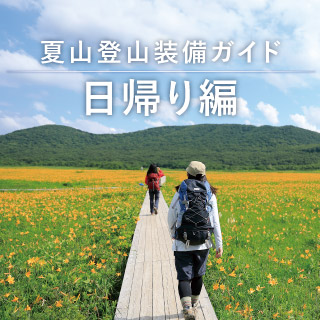 日帰り登山でも、雨・寒さ対策はしっかりと。紫外線・熱中症対策や十分な水分の準備が重要です。夏山を日帰りで安全・安心に楽しむのに必要な装備と山域情報をご紹介。