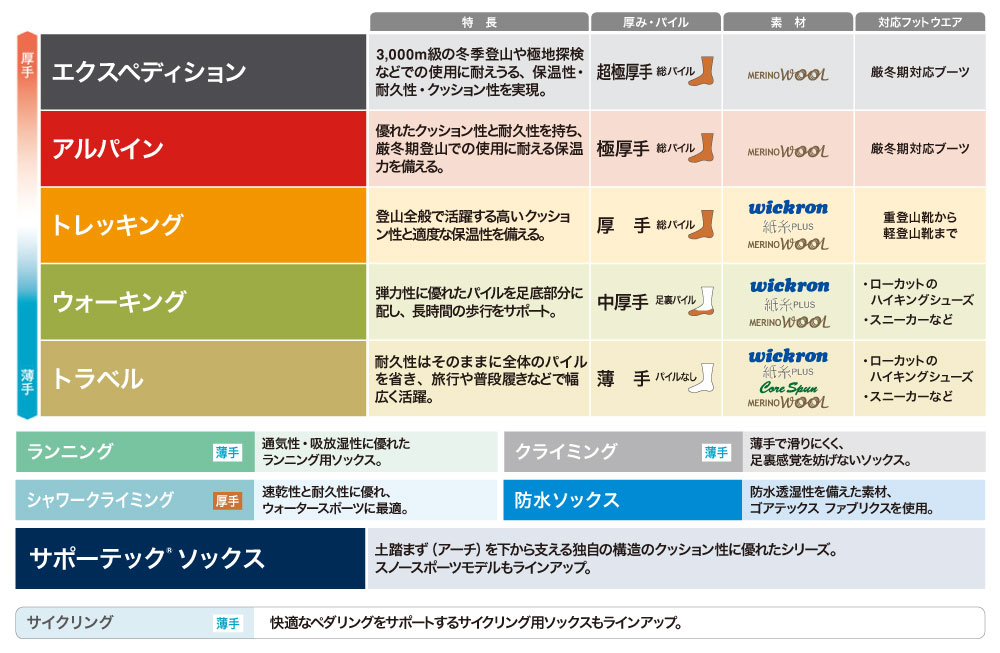 素材や厚み、形状などの豊富なバリエーションから、登山用ソックスの選び方をご紹介します。