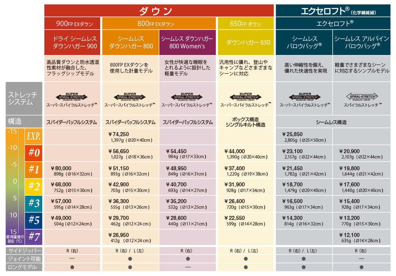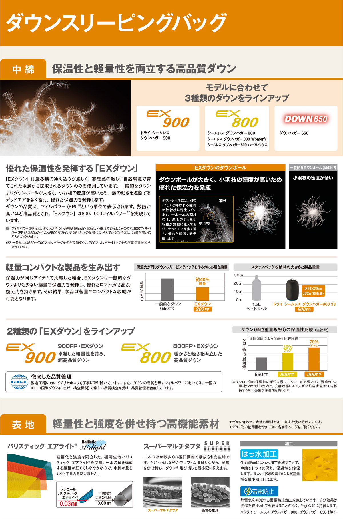 【スパイダーバッフルシステム システム採用シリーズ】 ドライ シームレス ダウンハガー 900 シームレス ダウンハガー 800 シームレス ダウンハガー 800 Women’s シームレス ダウンハガー 800 ハーフレングス シームレス ダウンハガー 800 サーマルシーツ