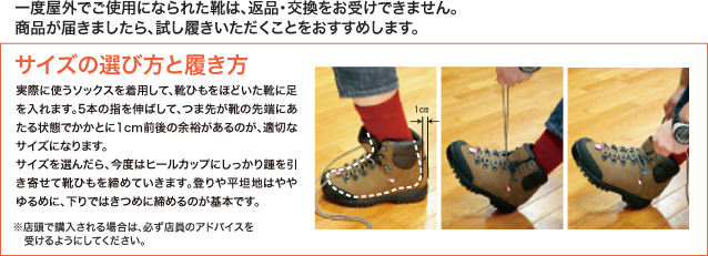 一度屋外でご使用になられた靴は、返品・交換をお受けできません。 商品が届きましたら、試し履きいただくことをおすすめします。