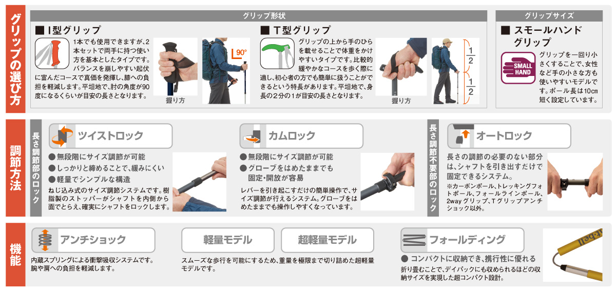 日帰りハイキングや縦走登山など、さまざまなシーンで活躍するトレッキングポール。足への負担を軽減し、快適なアクティビティを支える心強い味方です。豊富なラインアップの中から、目的や好みに応じて最適なモデルが選べます。