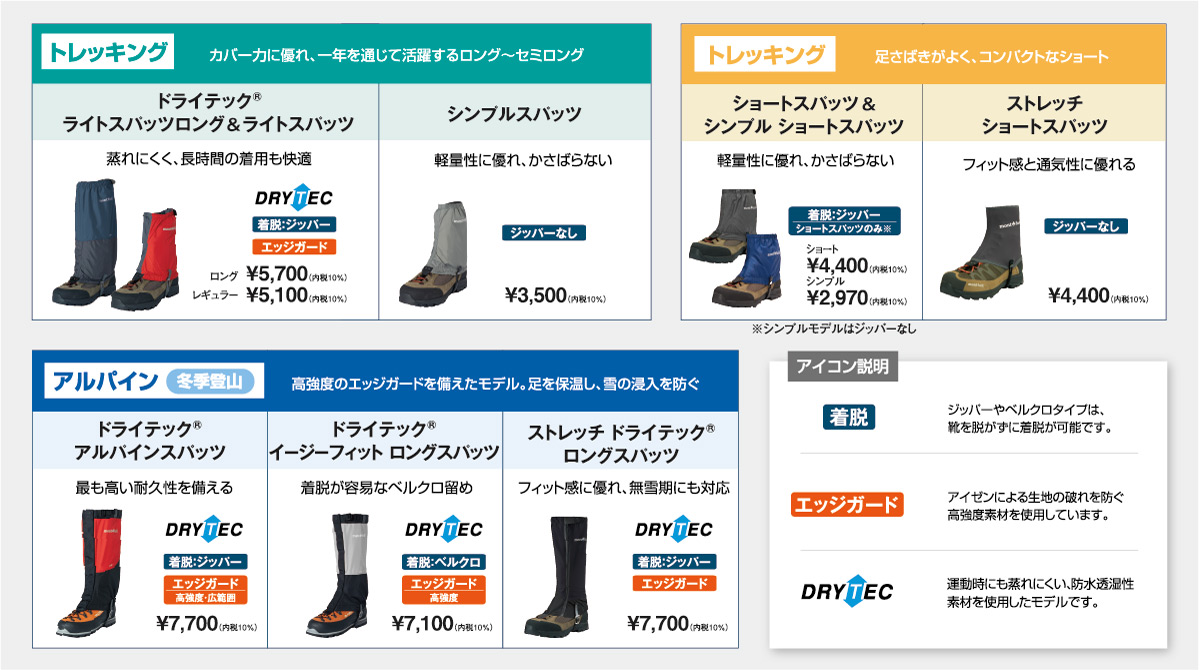 雨天時に活躍し、泥汚れや小石の侵入も防ぐ スパッツ