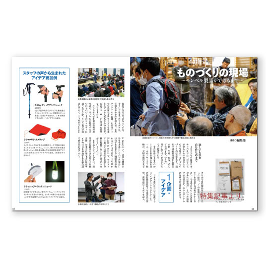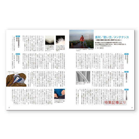 山の達人たちの装備や、長く使うためのメンテナンス方法について特集。モンベル製品の歴史やものづくりの現場も紹介します。