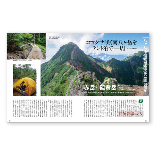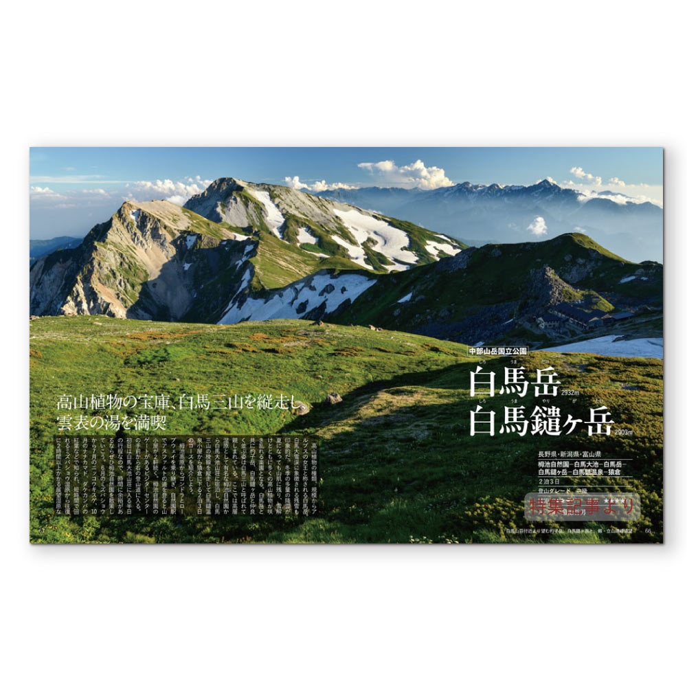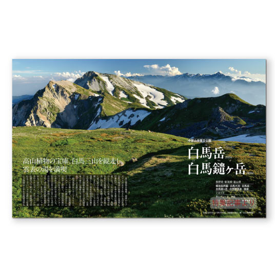 登山者になじみ深い山の多い中部山岳国立公園を中心に、北アルプスや八ヶ岳、東北の名山を特集しました。