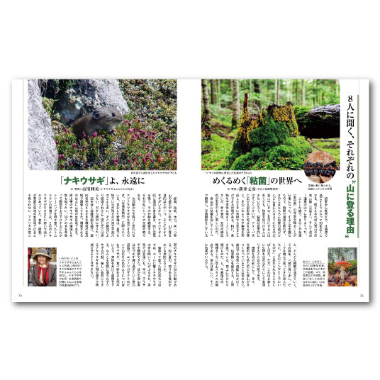 山の魅力や楽しさ、そこで生まれた文化を伝え、安全面や環境問題を含めて山と人との関係をより良いものにしたい、そんな思いを込め、みなさまにお届けいたします。