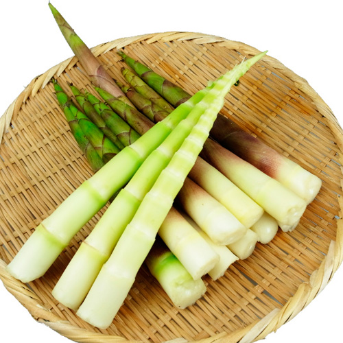 霊峰月山山麓でとれる根曲がり竹は月山筍と呼ばれ、地元でも珍重される春のごちそうです。月山筍の収穫は、まさに名人技。雪渓残る月山に登り、笹藪に分け入り1本1本手摘みし、30kgもの荷を背負い下山する険しいものとなっています。その味わいは、シャキシャキとした小気味よい歯触りに、ジューシーで大変美味です。月山筍は収穫の難しい希少さと他の細竹に無い食味の良さで、細竹・根曲がり竹の高級ブランドとなっています。貴重な月山筍のなかでもL~2Lサイズの特上品をお届けします。