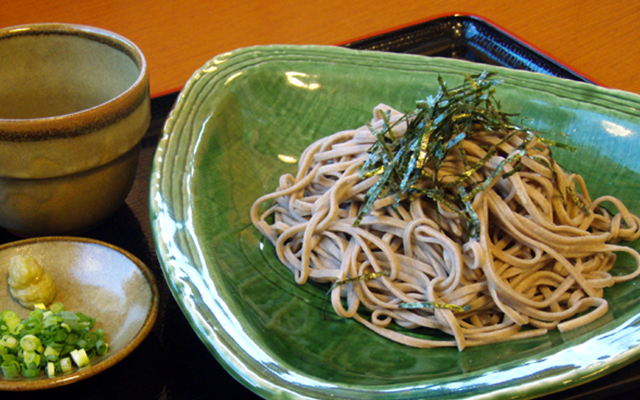 鳥取県大山町産そば粉と国産小麦粉を100%使用したのど越し抜群の「大山そば」です。甘皮まで挽き込む製法により、独特の黒い色と豊かなそばの風味を楽しめます。