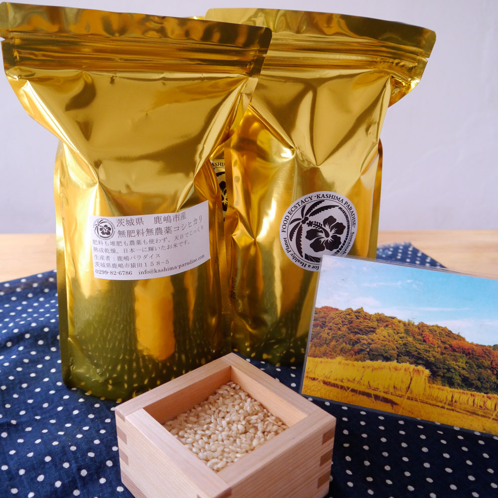 無肥料無農薬で栽培したコシヒカリを天日で2~3週間乾燥させたコシヒカリです。カビや虫の発生を防ぐために通常15%で仕上げる水分量を最も美味しいといわれる