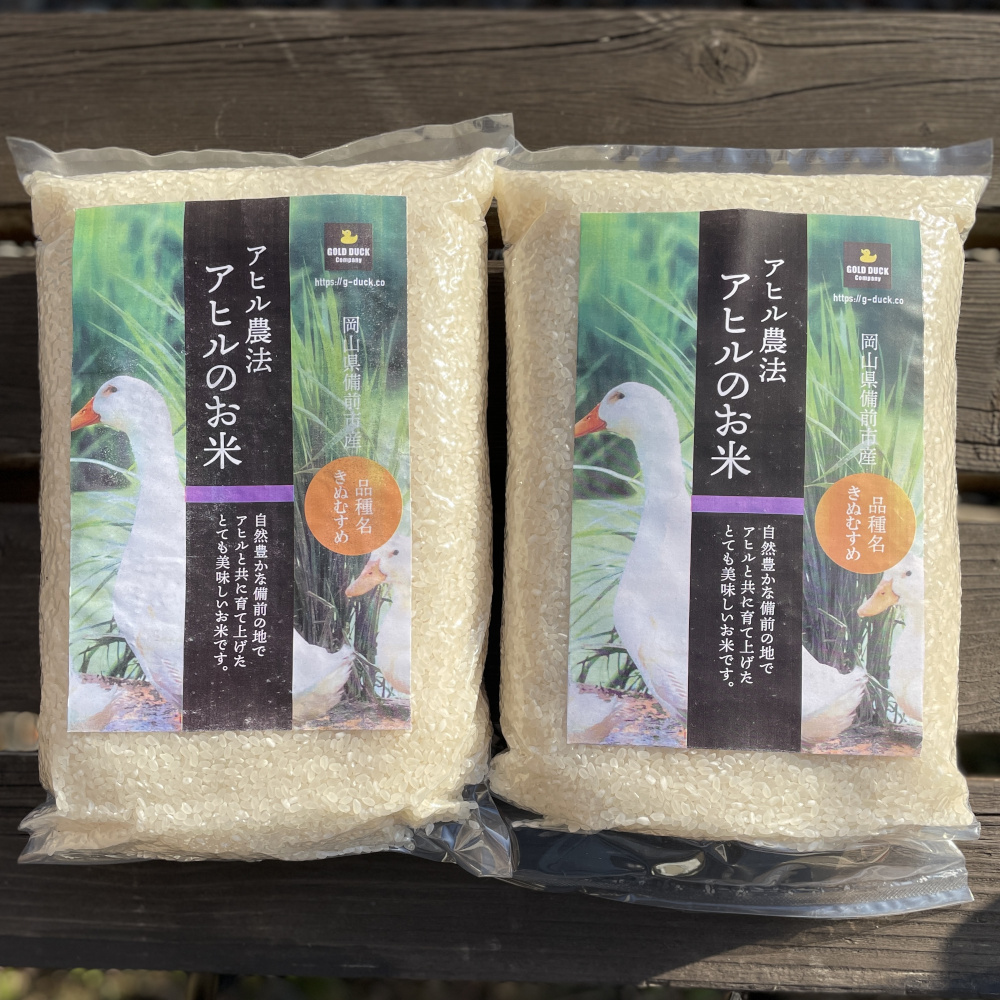 アヒル農法で栽培された「アヒルのお米」は化学肥料・農薬を栽培期間中不使用。土壌改良剤としてカキガラを使用。田植え1週間後に放されたアヒルのヒナは田んぼの中の害虫や草を食べ、田んぼの中を泳ぎ回ることで除草、稲の根張りを良くし、また排せつ物は天然の肥料となり元気な稲を育ててくれます。