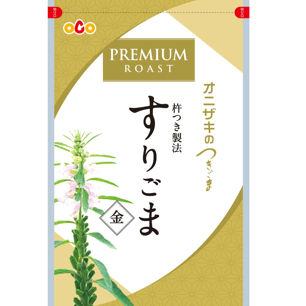 金ごま特有の豊かな香りを、深煎りでより高めた「金すりごま」。濃厚な金ごまの風味をお楽しみいただけます。