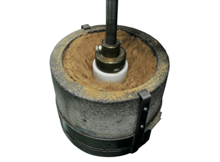 2. 【搗く】臼と杵で搗く「杵つき製法」。ゴマが本来持つ「コク」や「甘み」、「しっとり感」を引き出すには、杵の重さや臼の深さ、搗く強度や時間など絶妙な組み合わせが必要です。