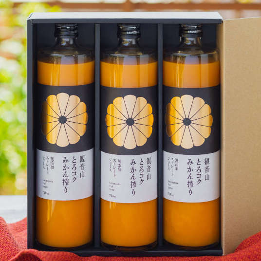 外の皮をむいてから搾っているため、皮の苦味が入らず、また果肉も一緒に粉砕しているので、とろとろでコクのあるみかんジュースに仕上がっています。その味が高く評価され、人気商品となっています。