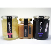 【素材】白桃(長野県産)、りんご(長野県産)、ぶどう(長野県産)、杏(長野県産)、クルミ(長野県産)、トマト(長野県産)、砂糖、レモン果汁、シナモン、トレハロース、酸味料、香料