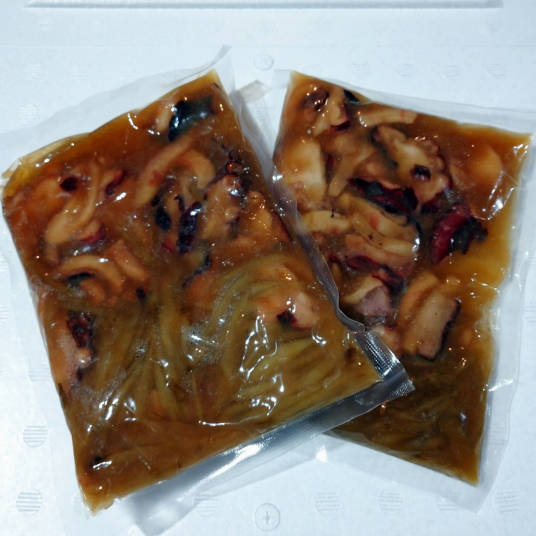 【素材】たこ(山形県産)、ごぼう(国産)、しょうゆ(小麦・大豆を含む)、清酒、みりん、白だし(小麦・えび・大豆を含む)、食塩、ゼラチン/酒精