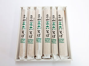 火力を使わない通風乾燥で、水分と風味を失うことなく、しっとりと上質なそばに仕上がった立山三六そば。さらに立山町産の小麦粉がのどごしの良さを生み、そばの風味・旨み・甘みを引き立てています。