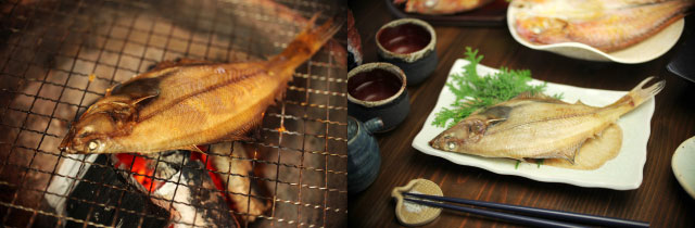 【素材】えてかれい(標準和名:ソウハチカレイ)、あじ(標準和名:マアジ)、のどぐろ(標準和名:アカムツ)、天日塩、食塩