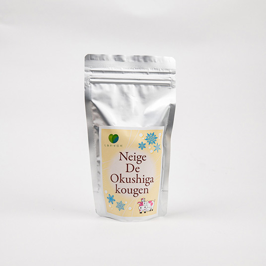 「Neige de okushigakougen」 はフランス語で「奥志賀高原の雪」という意味です。奥志賀高原の粉雪のように繊細で清らかなチーズを作りたくて、3年の歳月をレシピ研究に費やし、試行錯誤を重ねて完成しました。原材料の生乳は、年間平均無脂乳固形分が8.8%以上、脂肪分は年平均3.8%以上のものを使用しています。ホルスタインの牛乳でありながらジャージーなどの成分の濃い牛乳にも負けない濃厚な生乳です。