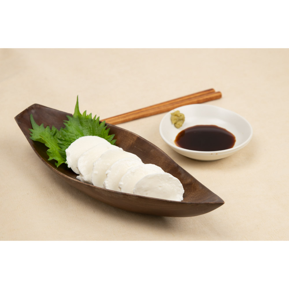 スライスしてわさび醤油で食べてもおいしいですし、生ハムとトマト、オリーブオイル、バジル粉でカプレーゼにして食べてもおいしいです。