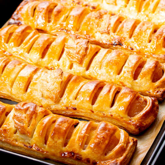 りんご栽培が盛んな長野県飯綱町産のリンゴをたっぷり使用したスイーツです。見たこともないような28㎝の長~いアップルパイは紅玉リンゴをたっぷりのせ、クルミやアーモンドのコクのあるペーストを入れてジューシーに焼き上げました。