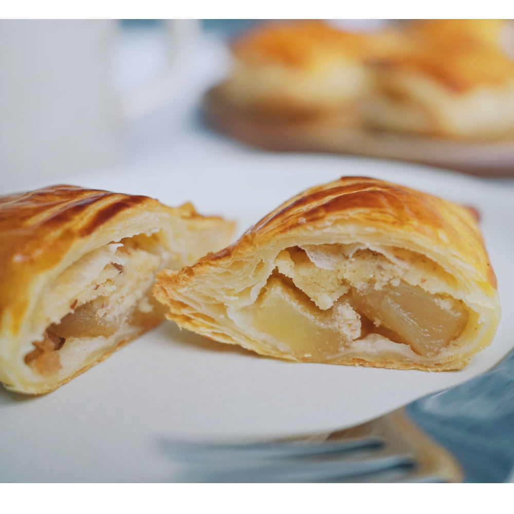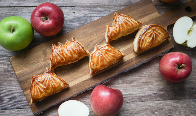 りんご本来の美味しさを生かすために、りんごの種類によって調理法を変えています。 優しいバター風味のパイ生地に包み込み、急送冷凍庫にて瞬間冷凍し、美味しさをそのままにお届けします。焼き立ての美味しさを急速冷凍してお届け。自然解凍後、オーブントースターで食べる分だけ温めれば作り立ての味が楽しめます。または1~2時間自然解凍させたひんやりとしたアップルパイもおすすめです。