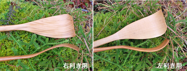 先端の左側のアールが右側にくる左利き用もご用意しています。ご注文時、備考欄に「左利き用」とお書きください。
