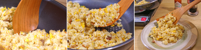 先端のカーブにより、チャーハンやミックスベジタブルのような細かなものもすくい出すことができます。