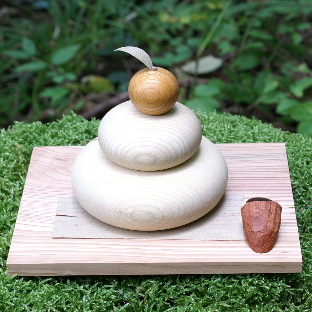 カビない、割れない 木製鏡餅。鏡餅は、年神様へのお供え物として、また神様の宿る場所として飾られてきました。平安時代から続くとされる、日本の伝統文化です。