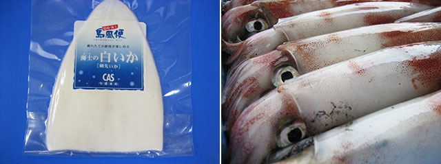 細胞・組織を壊さない最先端の冷凍技術「CAS凍結」した状態でお届けします。釣り上げてから短時間で凍結された白いかは、解凍すると透明感が蘇り、吸盤がくっつくくらいの鮮度で蘇ります。一年中鮮度の良い旬な白いかをお召し上がり頂けます。