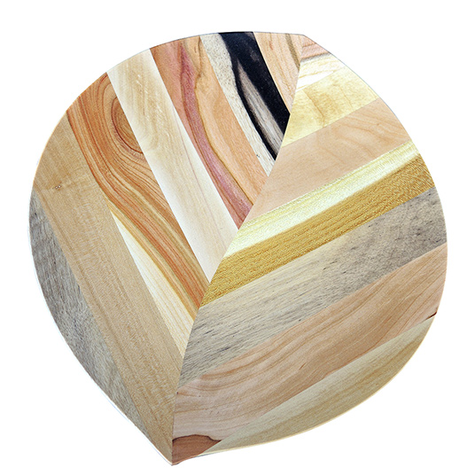彩り豊かな果樹の角材を模様のように合わせ、曲線にカットし、さらに貼り合わせて木の葉を模したお皿です。シンプルなデザインとナチュラルな風合いは和食や洋食、スイーツまでどんな料理も引き立てます。