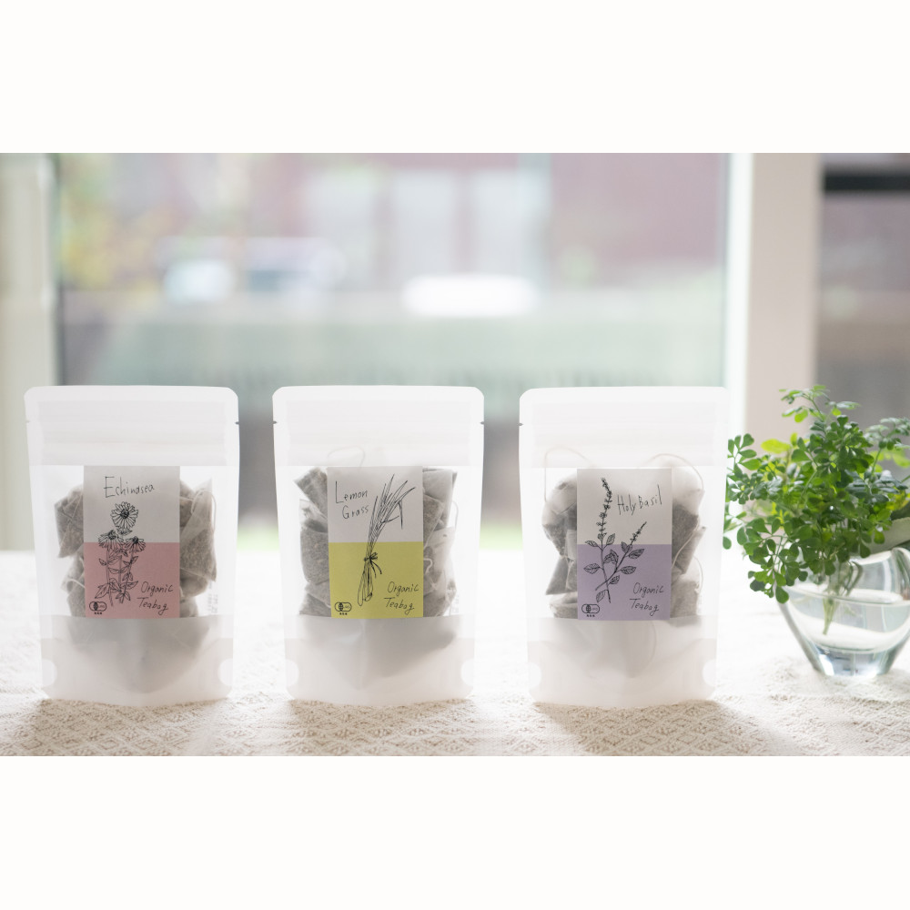 【内容量】有機エキナセアティー(1.5g×10P)、有機レモングラスティー(1.5g×10P)有機ホーリーバジルティー(1.5g×8P)