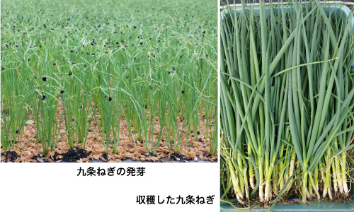 トレーに種を蒔き、2ヶ月ほどかけて苗を育て、畑に定植します。時期によっては播種から収穫までに半年以上かかります。有機肥料でじっくりと育てた九条ねぎは、甘みがあり、やわらかく香りが良いのが特徴です。