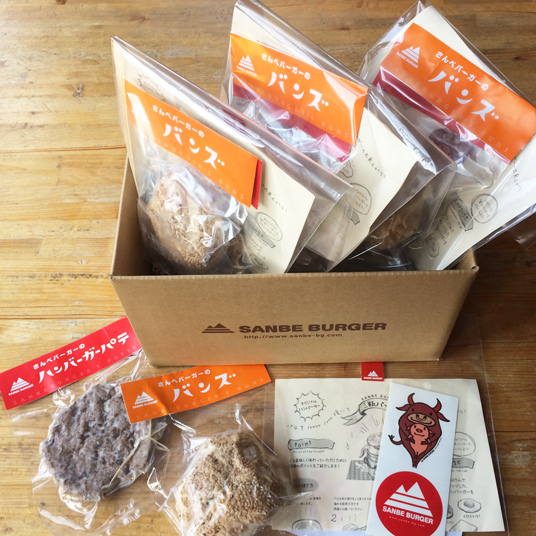 最高のロケーションと食材が織りなすご当地バーガー店SANBE BURGER。自信をもってお届けするハンバーガーが、そのままご家庭で楽しめます。島根県産100%の牛肉、豚肉はおいしい配合を吟味し、塊肉からつくる自信作。パテはあらかじめ焼いてあるので、アウトドアでも簡単に本格バーガーが作れます。